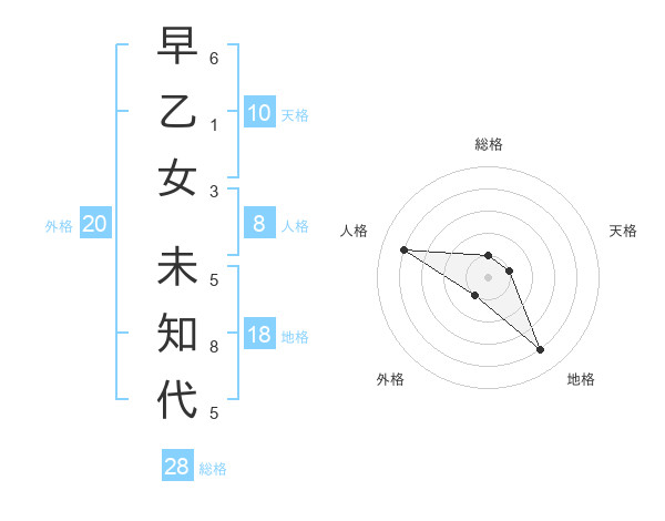 早乙女 未知代さんを姓名の画数から五運を鑑定