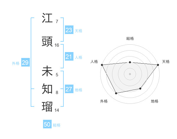江頭 未知瑠さんを姓名の画数から五運を鑑定