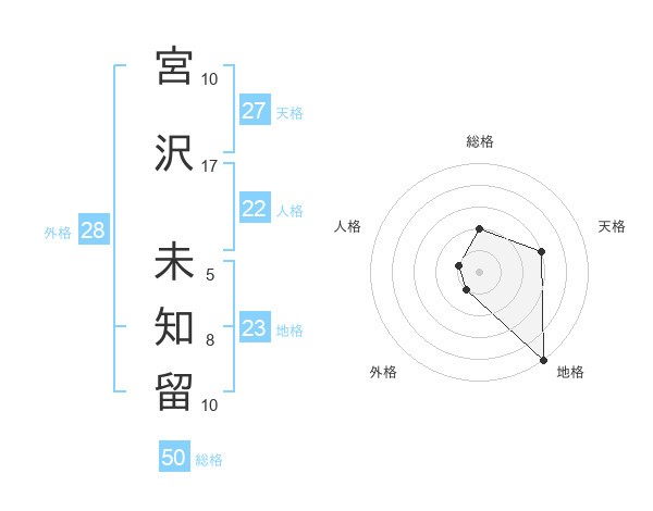 宮沢 未知留さんを姓名の画数から五運を鑑定