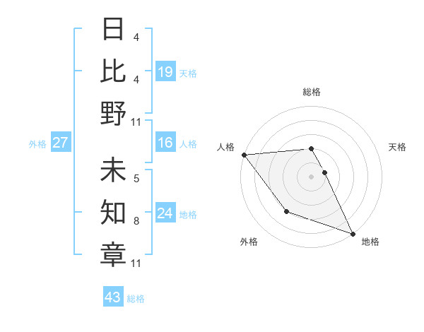 日比野 未知章さんの天格は19画の1点!