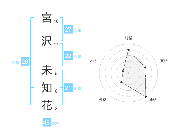 宮沢 未知花さんを姓名の画数から五運を鑑定
