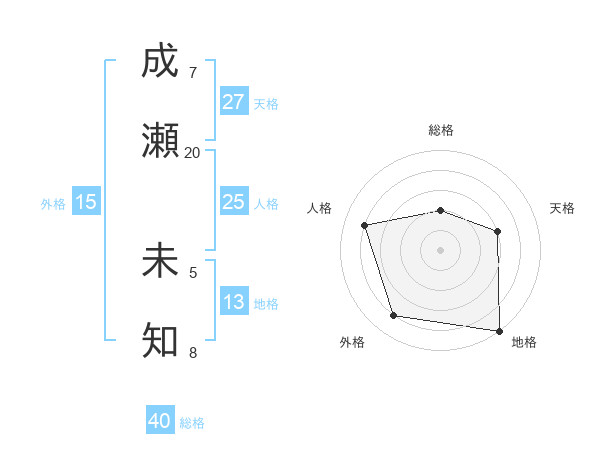 成瀬 未知さんの地格は13画の5点!