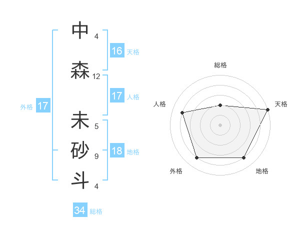中森 未砂斗さんの総格は34画の2点!