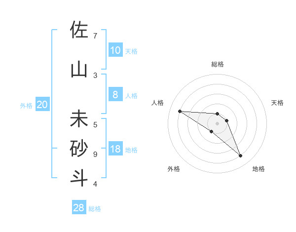佐山 未砂斗さんを姓名の画数から五運を鑑定