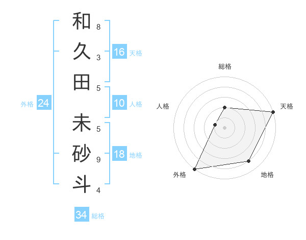 和久田 未砂斗さんを姓名の画数から五運を鑑定