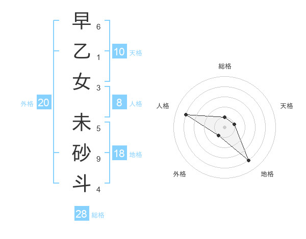 早乙女 未砂斗さんを姓名の画数から五運を鑑定