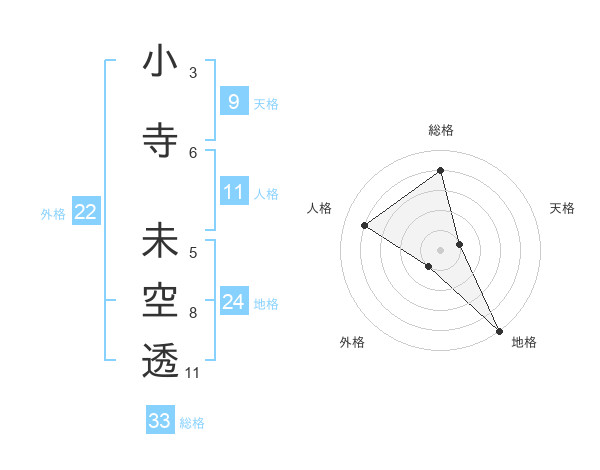 小寺 未空透さんを姓名の画数から五運を鑑定