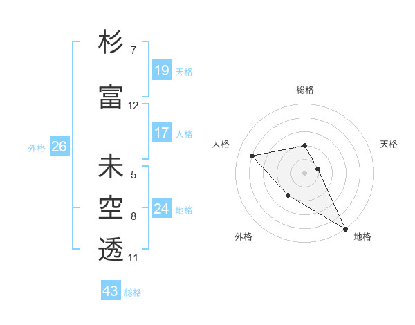 杉富 未空透さんを姓名の画数から五運を鑑定
