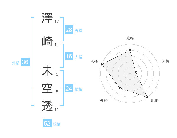 澤崎 未空透さんの総格は52画の4点!