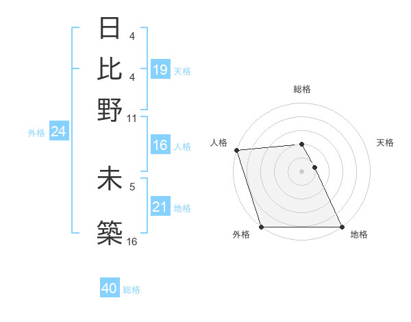 日比野 未築さんの外格は24画の5点!