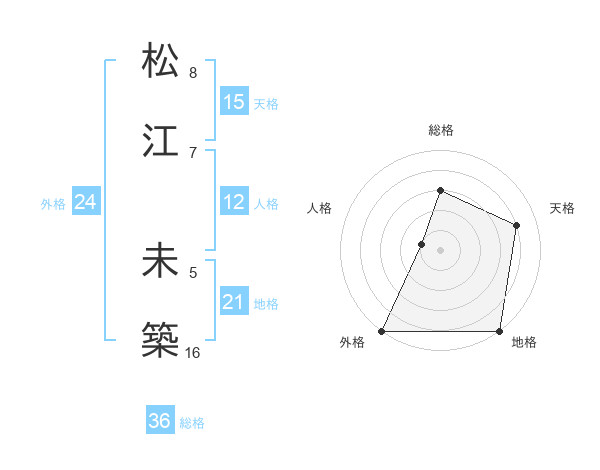 松江 未築さんの外格は24画の5点!