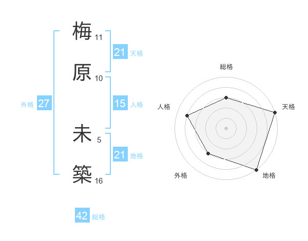 梅原 未築さんの天格は21画の5点!