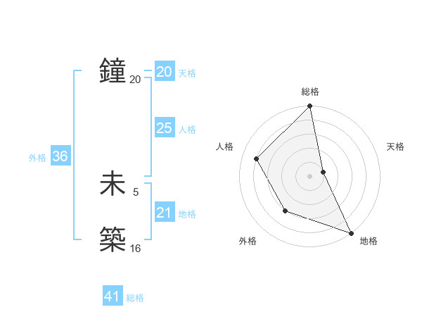 鐘 未築さんの天格は20画の1点!
