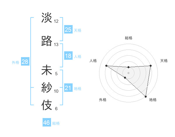 淡路 未紗伎さんの総格は46画の1点!