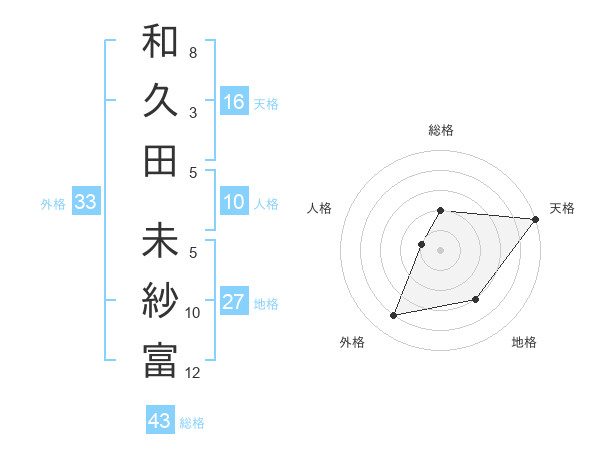 和久田 未紗富さんを姓名の画数から五運を鑑定