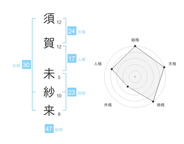 須賀 未紗来さんを姓名の画数から五運を鑑定