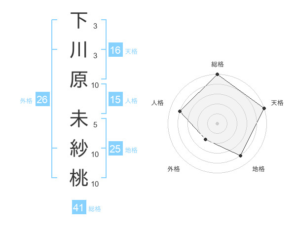 下川原 未紗桃さんを姓名の画数から五運を鑑定