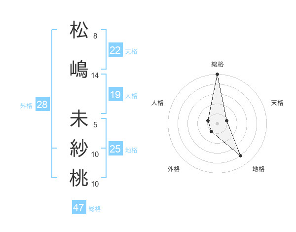 松嶋 未紗桃さんを姓名の画数から五運を鑑定
