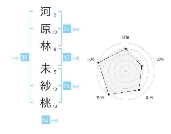 河原林 未紗桃さんを姓名の画数から五運を鑑定