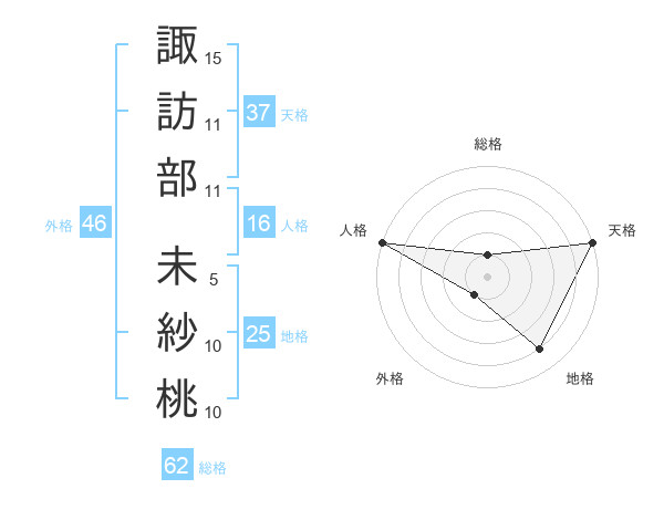 諏訪部 未紗桃さんを姓名の画数から五運を鑑定