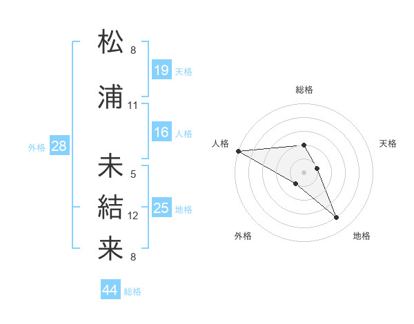 松浦 未結来さんを姓名の画数から五運を鑑定