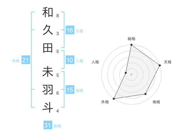 和久田 未羽斗さんを姓名の画数から五運を鑑定