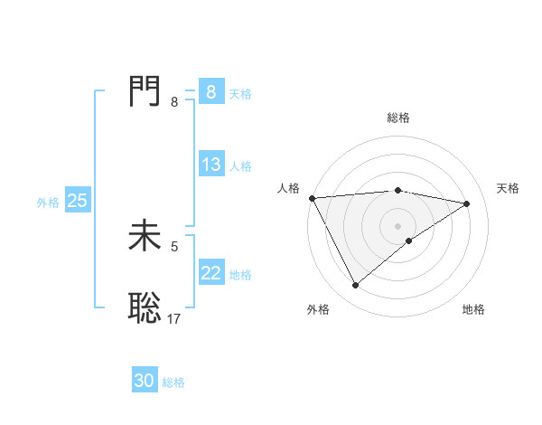 門 未聡さんの天格は8画の4点!