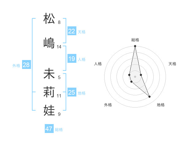松嶋 未莉娃さんを姓名の画数から五運を鑑定