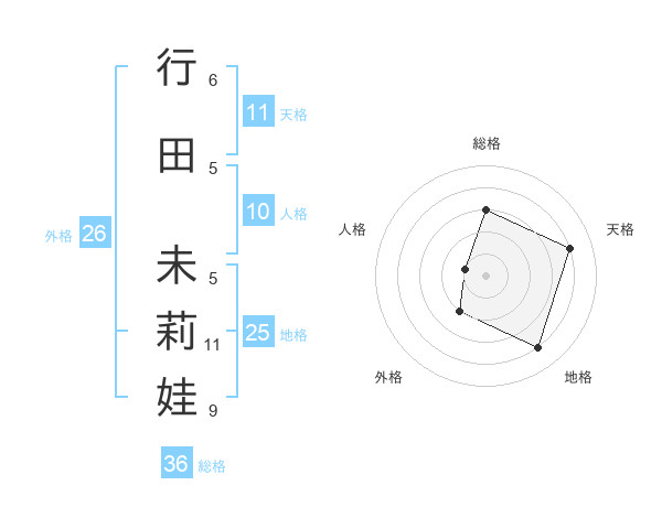 行田 未莉娃さんを姓名の画数から五運を鑑定