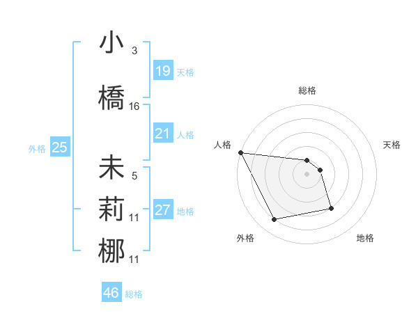 小橋 未莉梛さんの天格は19画の1点!