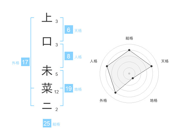 上口 未菜ニさんを姓名の画数から五運を鑑定