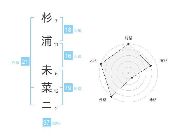杉浦 未菜ニさんを姓名の画数から五運を鑑定