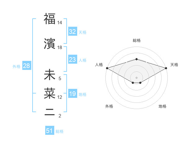 福濱 未菜ニさんの総格は51画の3点!