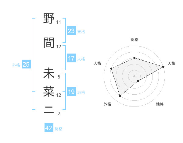 野間 未菜ニさんを姓名の画数から五運を鑑定
