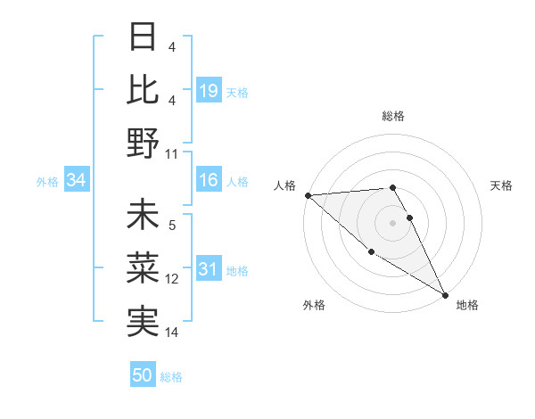 日比野 未菜実さんを姓名の画数から五運を鑑定