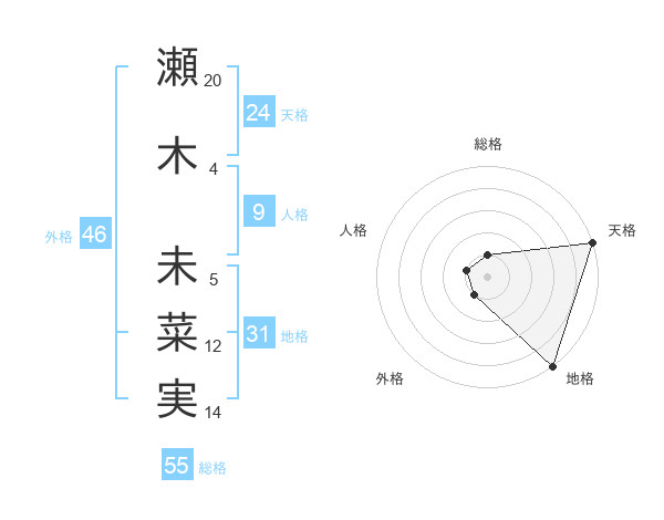 瀬木 未菜実さんを姓名の画数から五運を鑑定