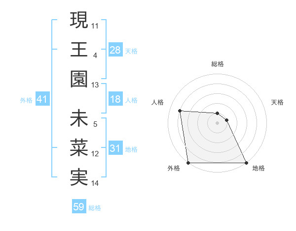 現王園 未菜実さんの外格は41画の5点!