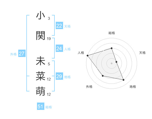 小関 未菜萌さんを姓名の画数から五運を鑑定