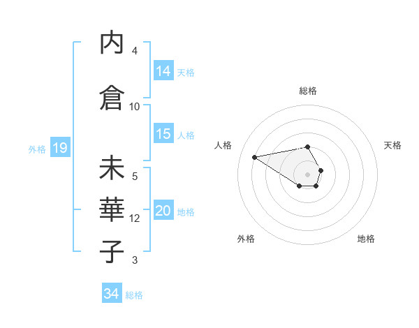内倉 未華子さんの総格は34画の2点!