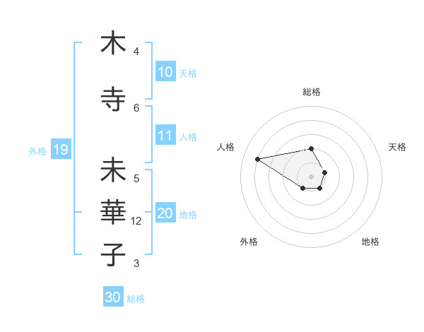 木寺 未華子さんを姓名の画数から五運を鑑定