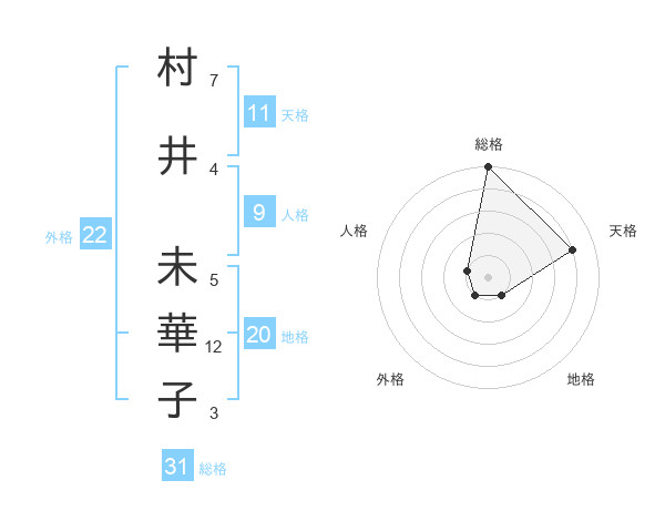 村井 未華子さんの総格は31画の5点!