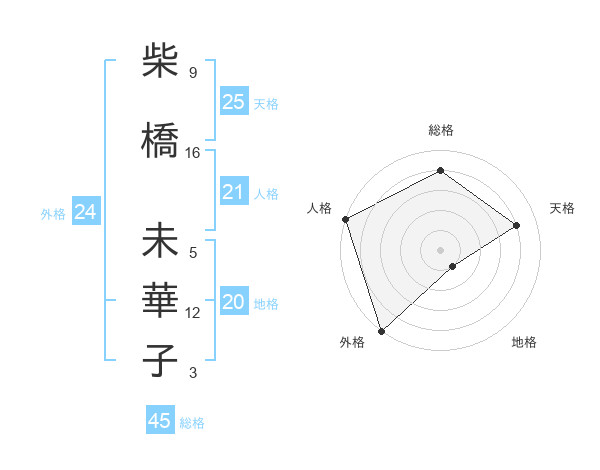 柴橋 未華子さんの外格は24画の5点!