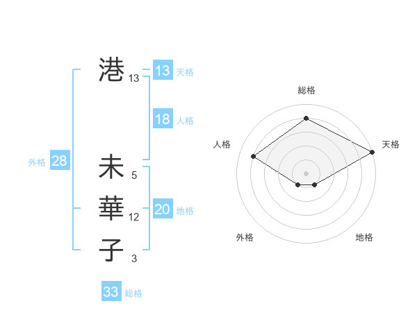 港 未華子さんの天格は13画の5点!