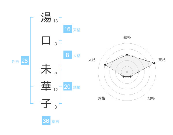 湯口 未華子さんの天格は16画の5点!