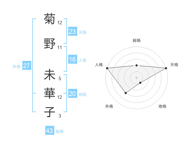 菊野 未華子さんを姓名の画数から五運を鑑定