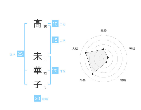 髙 未華子さんの総格は30画の2点!