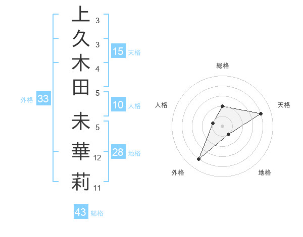 上久木田 未華莉さんの総格は43画の2点!