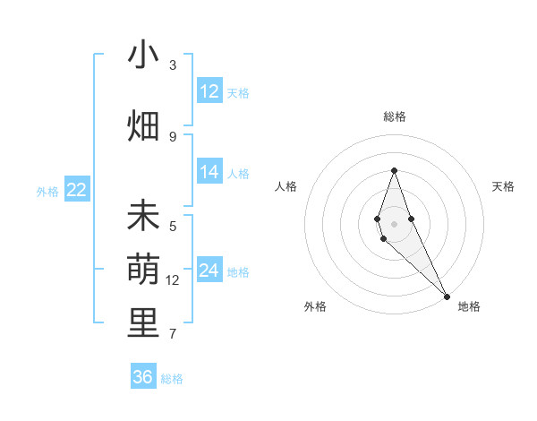 小畑 未萌里さんを姓名の画数から五運を鑑定