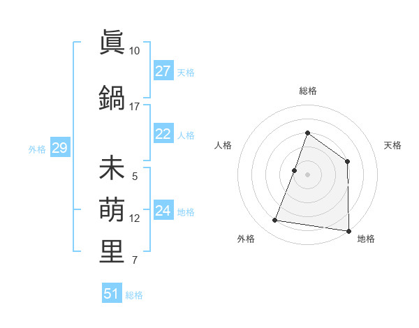眞鍋 未萌里さんの総格は51画の3点!