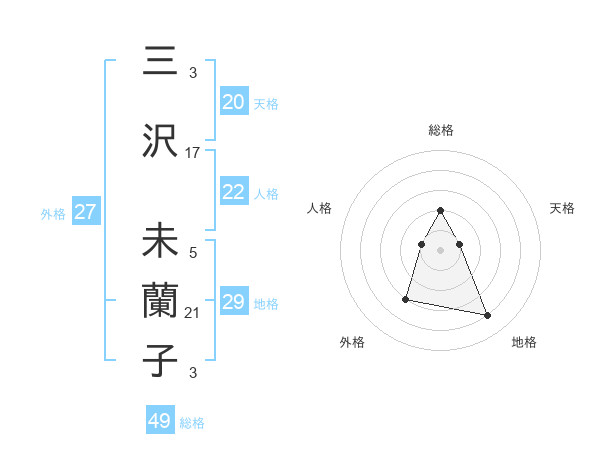 三沢 未蘭子さんを姓名の画数から五運を鑑定